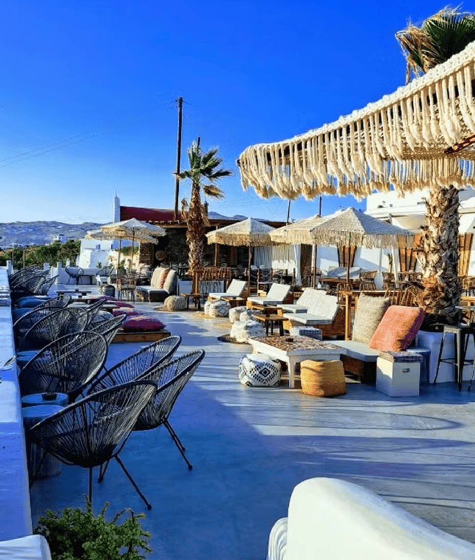 Experience breathtaking sunsets at Adelon Sunset Bar in Mykonos with live violin music, cocktails, and local delicacies. Enjoy a reserved spot with views of Chora and the Aegean Sea, sipping a Margarita or Mojito 🍸 accompanied by local delicacies like bruschetta and Mykonian pie.